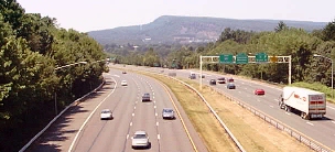 just ahead: view of West Peak + Hubbard Park, Meriden exit