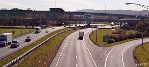 travel lanes and the various informative signs along its path.